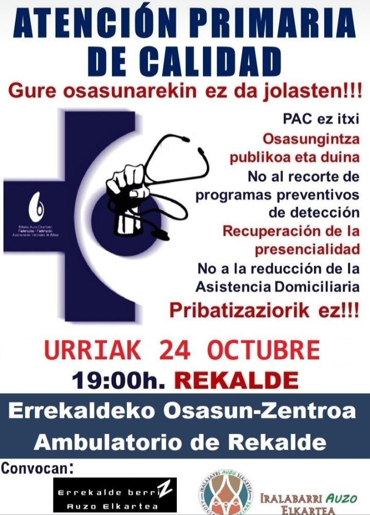“Lankidetza publiko-pribatua” eufemismoaren atzean, Eusko Jaurlaritzak osasun publikoa ahultzen jarraitzen du, herritarrei egoera hobetu dela sinestarazi nahian. Hala ere, murrizketek jarraitzen dute, bereziki Lehen Mailako Arretan, ordutegi murrizketekin, osasun-zentroen itxierarekin eta larrialdien kolapsoarekin.