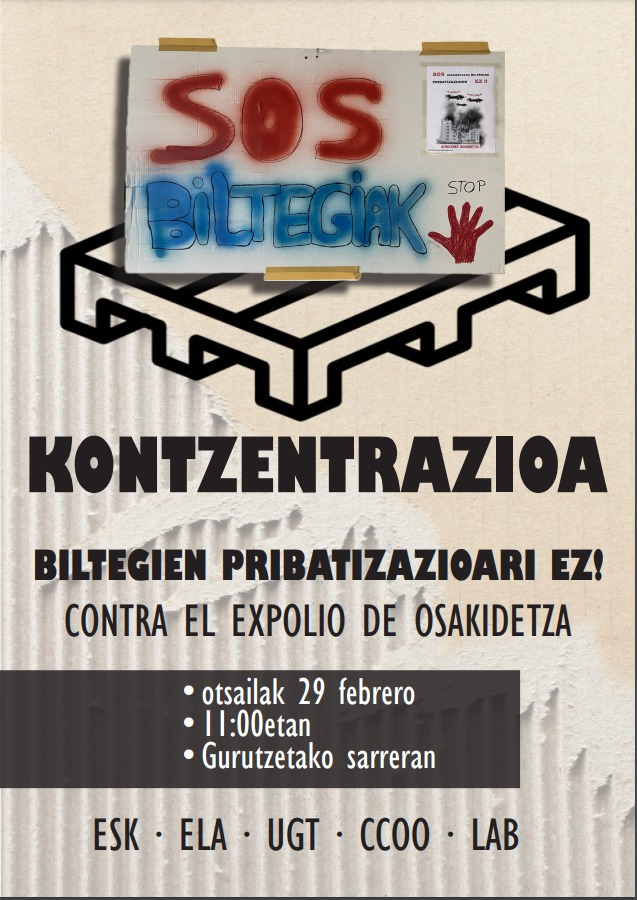Ezin dugu inondik inora onartu zerrenda horiek murriztea zerbitzuen pribatizazioaren kontura, edozein trikimailu erabilita ere, hala nola klinika pribatuetara edo kontzertuetara desbideratuz, edo "peonaden" bitartez. Osasuna ez da merkatu-ondasun bat, eskubide unibertsal bat baizik.